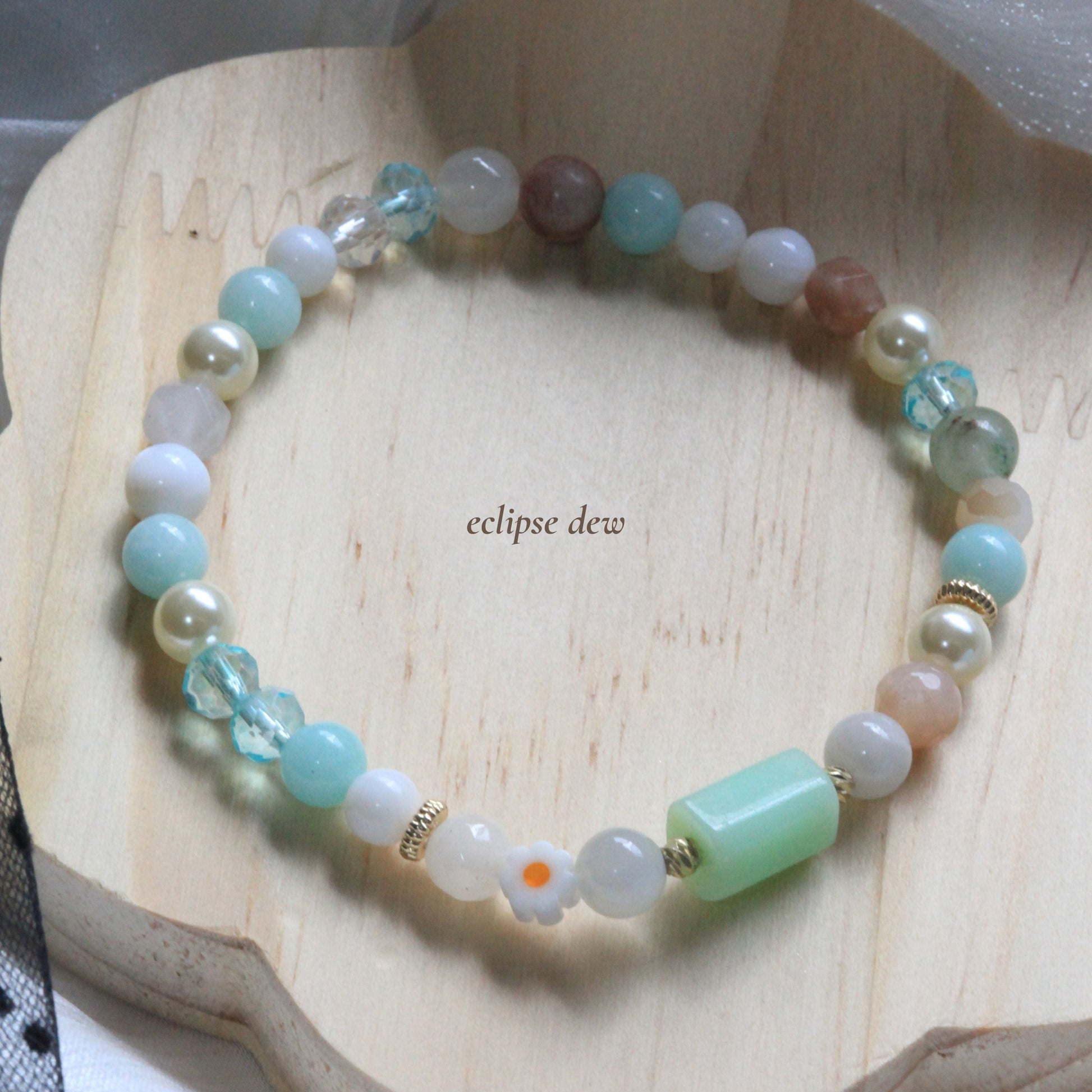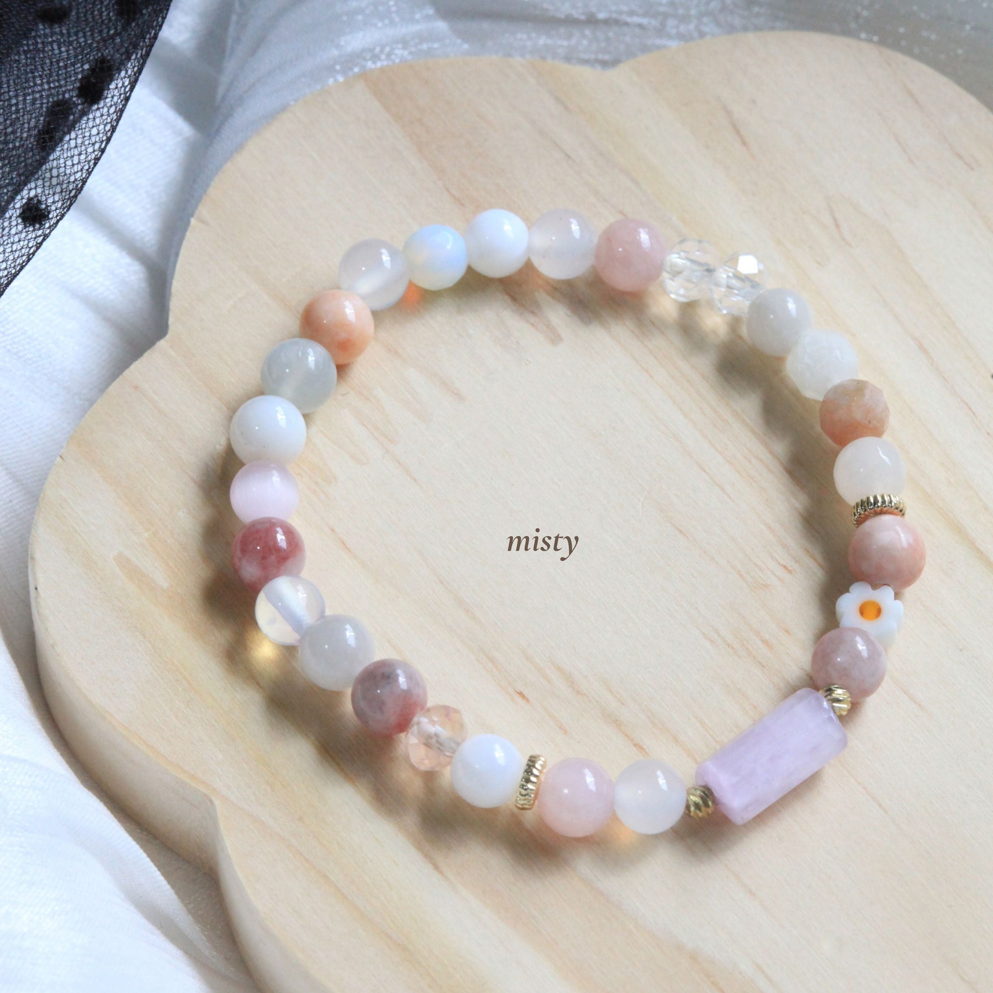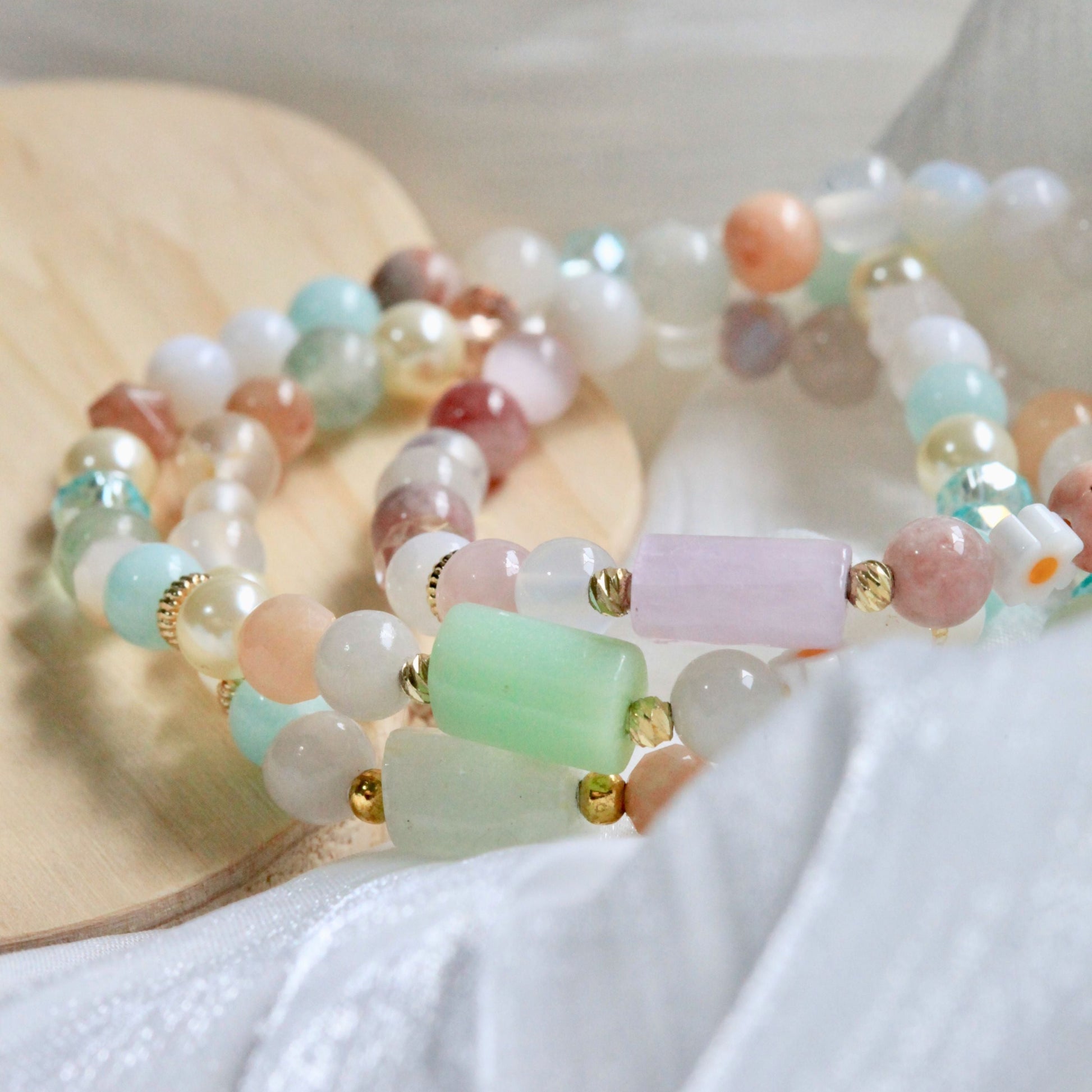 Dreamtide is a gentle moment you can wear - a quiet chorus of pastel stones, soft glimmers and cloud-like beads that move as delicately as breath. Each piece is strung with a palette inspired by sky moods: the tender blush of Mist, the cool hush of Aura, and the serene teal drift of Eclipse Dew. Together, they create a bracelet that feels like a memory of calm mornings, soft pages turned, and the quiet hope that blooms in stillness.
