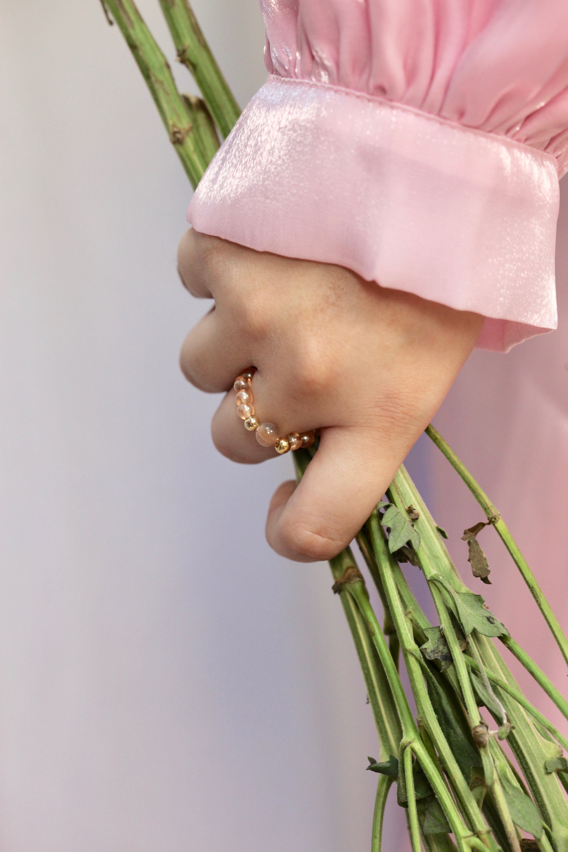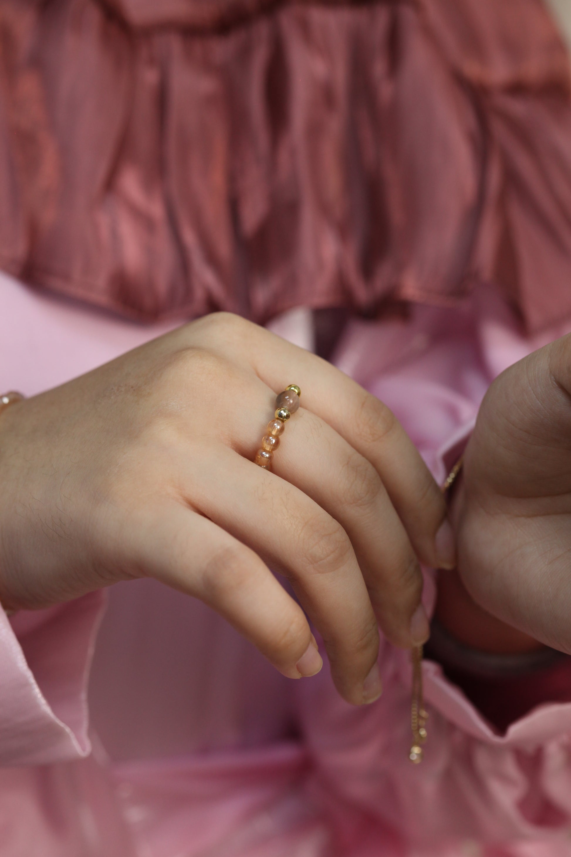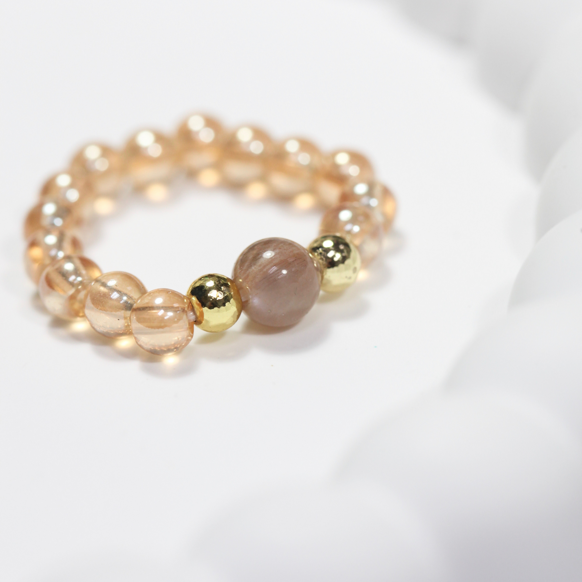 - Tranquil Design: Crafted with champagne aura quartz and a mesmerizing peach moonstone, this ring exudes calmness and serenity.
