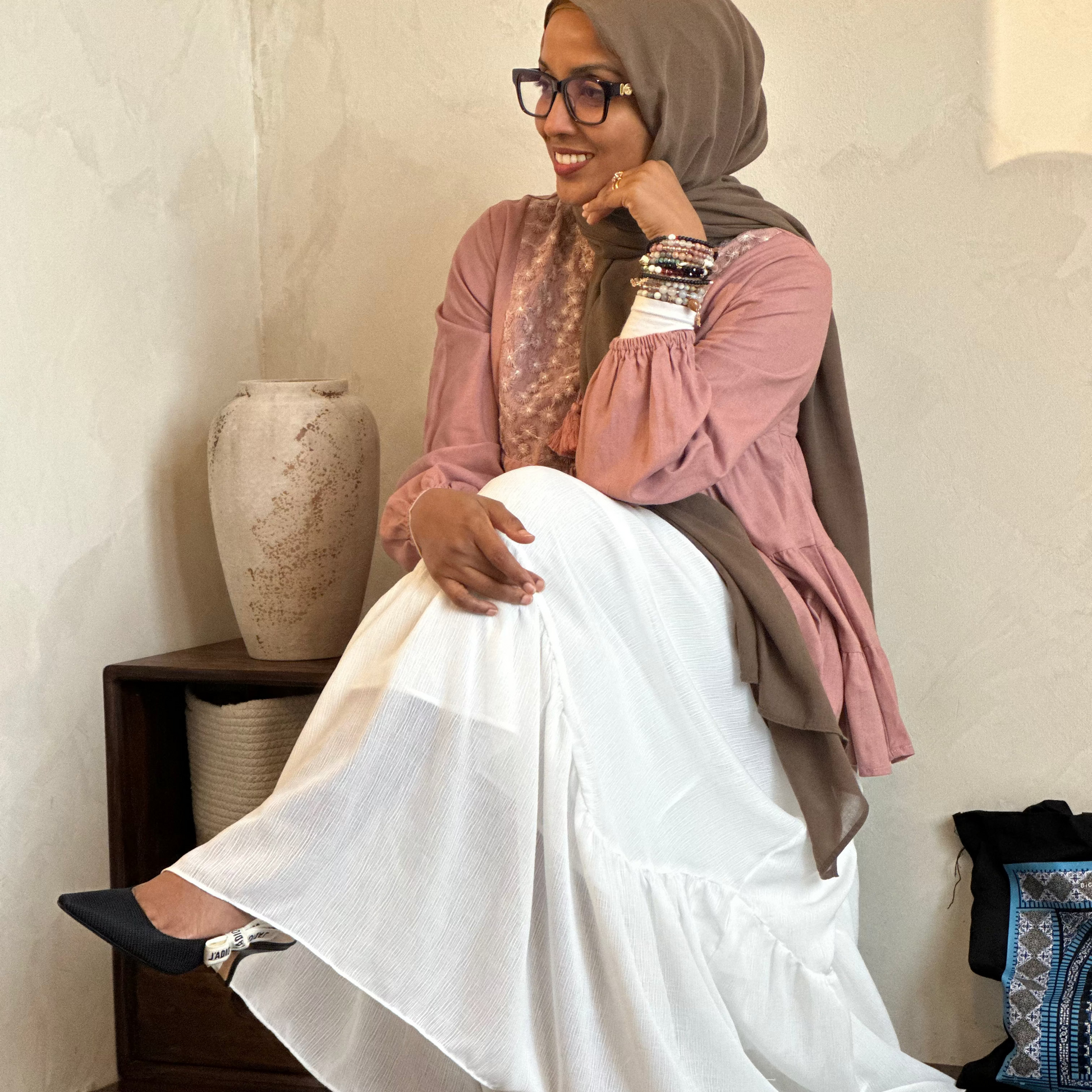 The fabric holds a natural grace, draping in a way that feels both forgiving and intentional. Its tiers fall like softened verses, folding and unfolding with the rhythm of your day. The subtle lace and delicate detailing whisper femininity without insistence, allowing the piece to feel timeless but never loud.