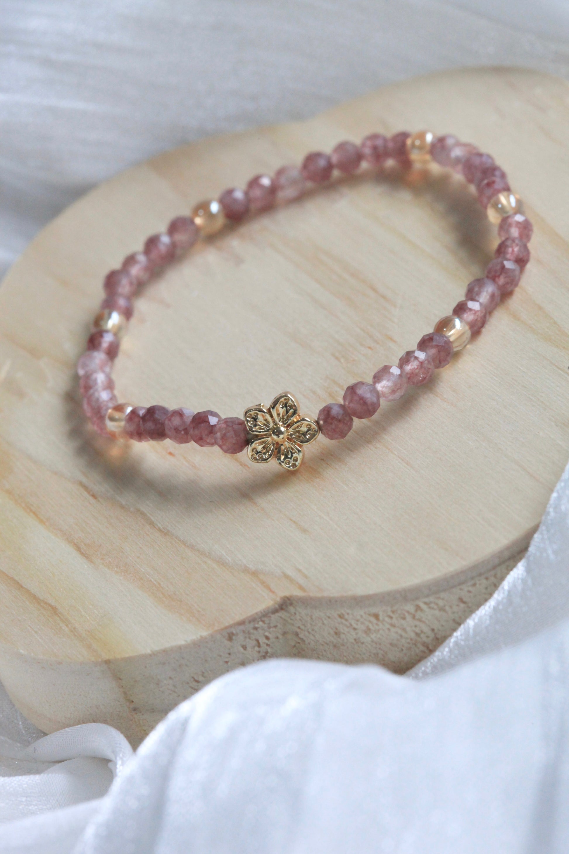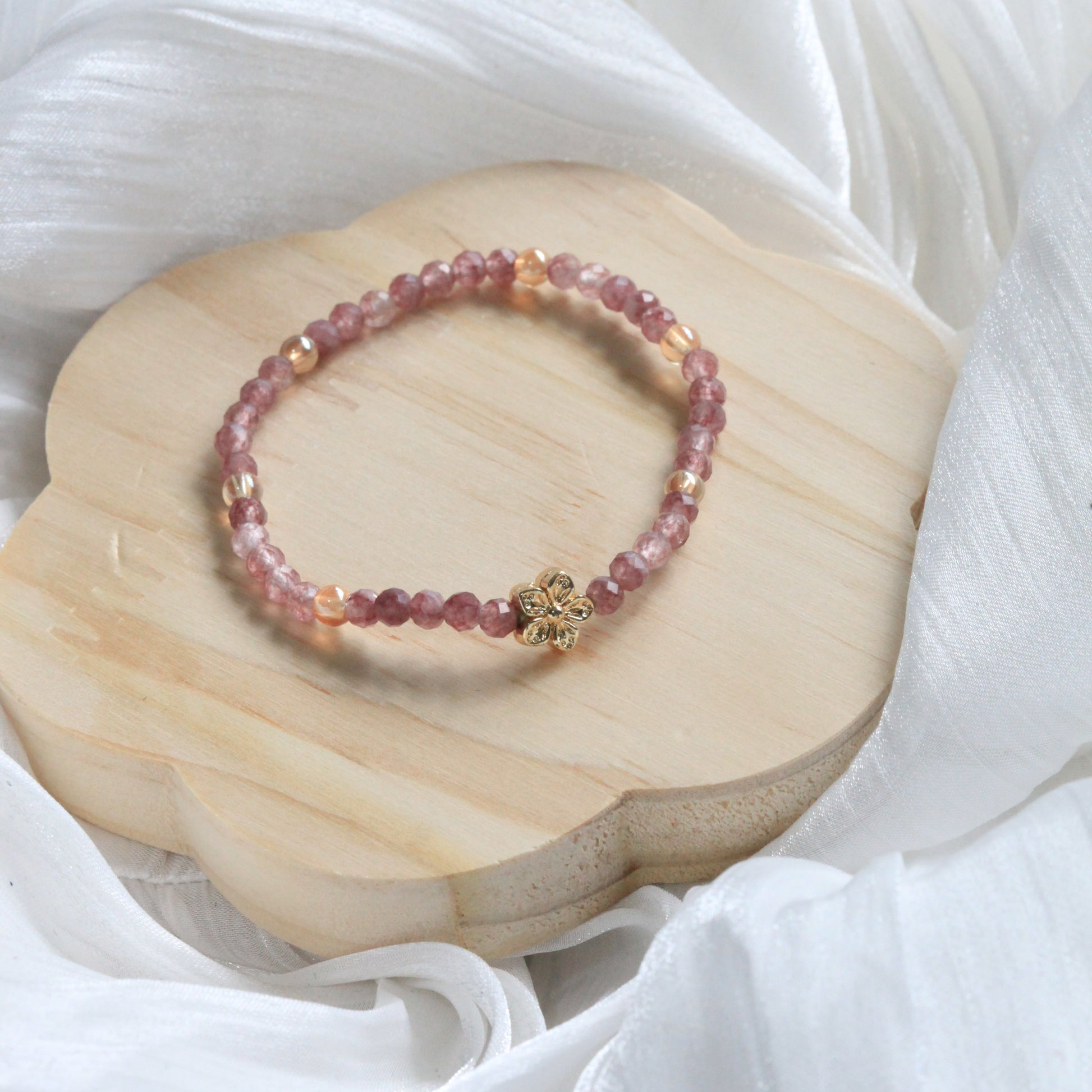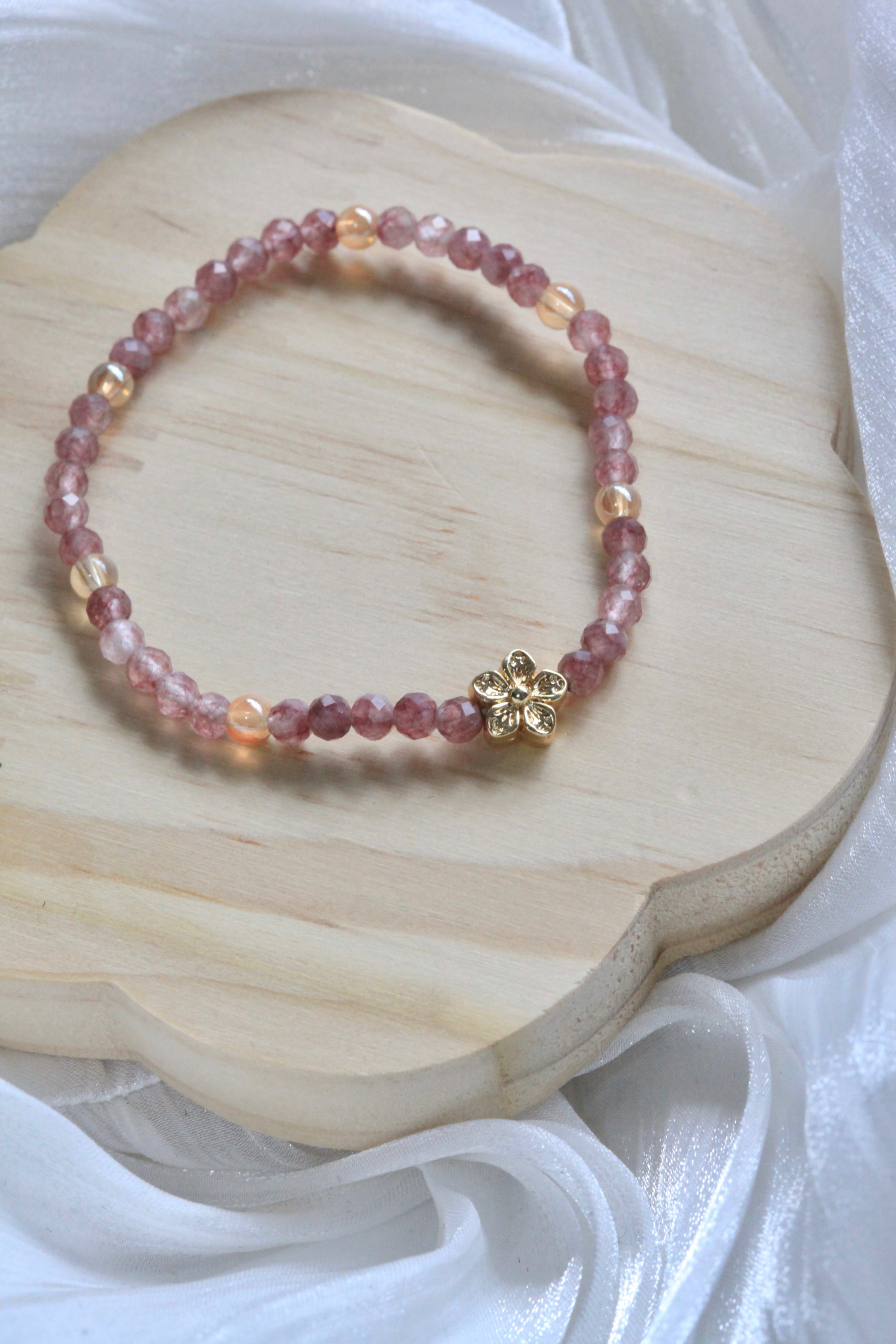 This bracelet glows with the muted lavender of faceted lepidolite, each tiny stone like a whispered thought, calming and gentle. Nestled between them, champagne aura quartz catches the light with a subtle shimmer - like grace that doesn't need to speak loudly to be seen.