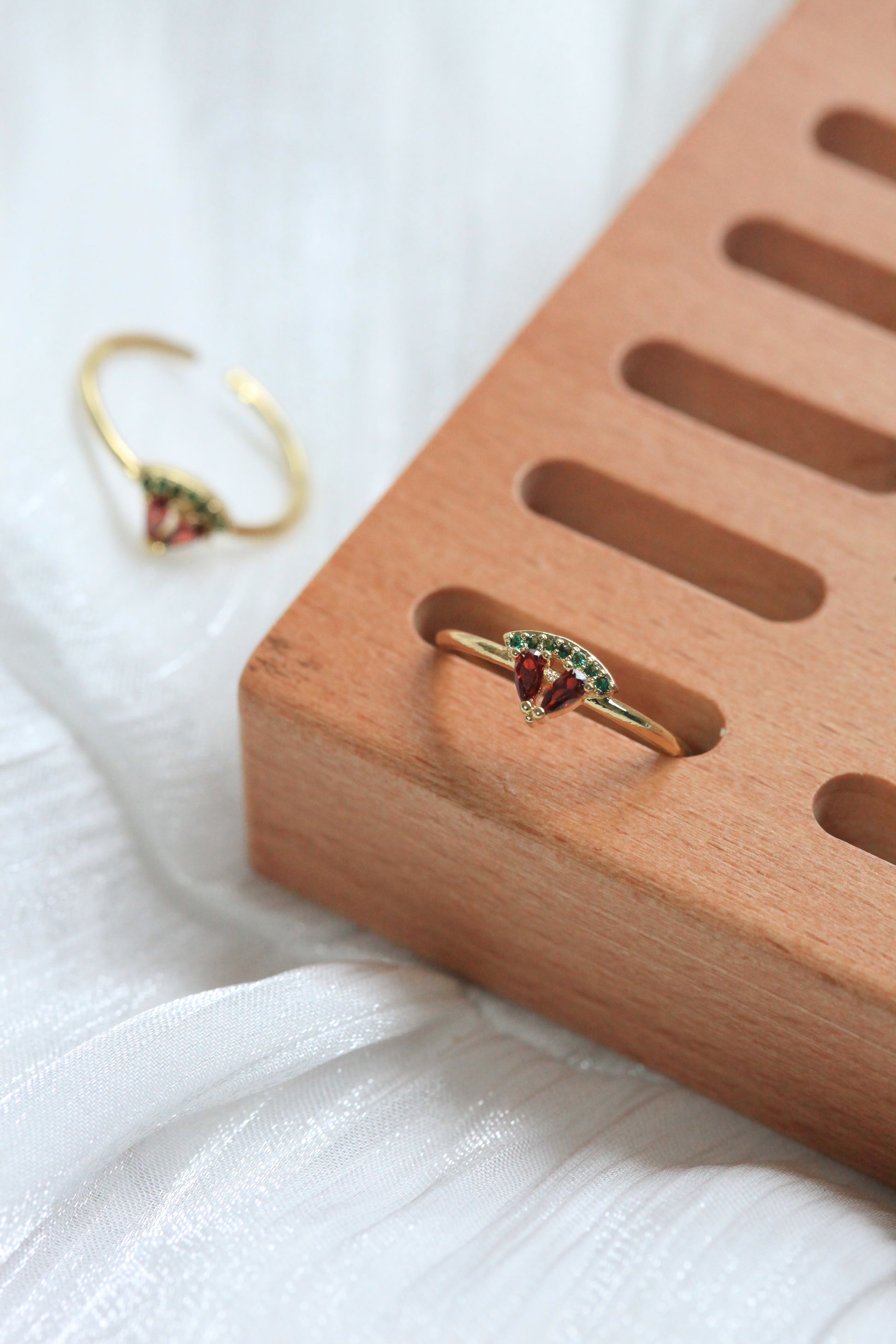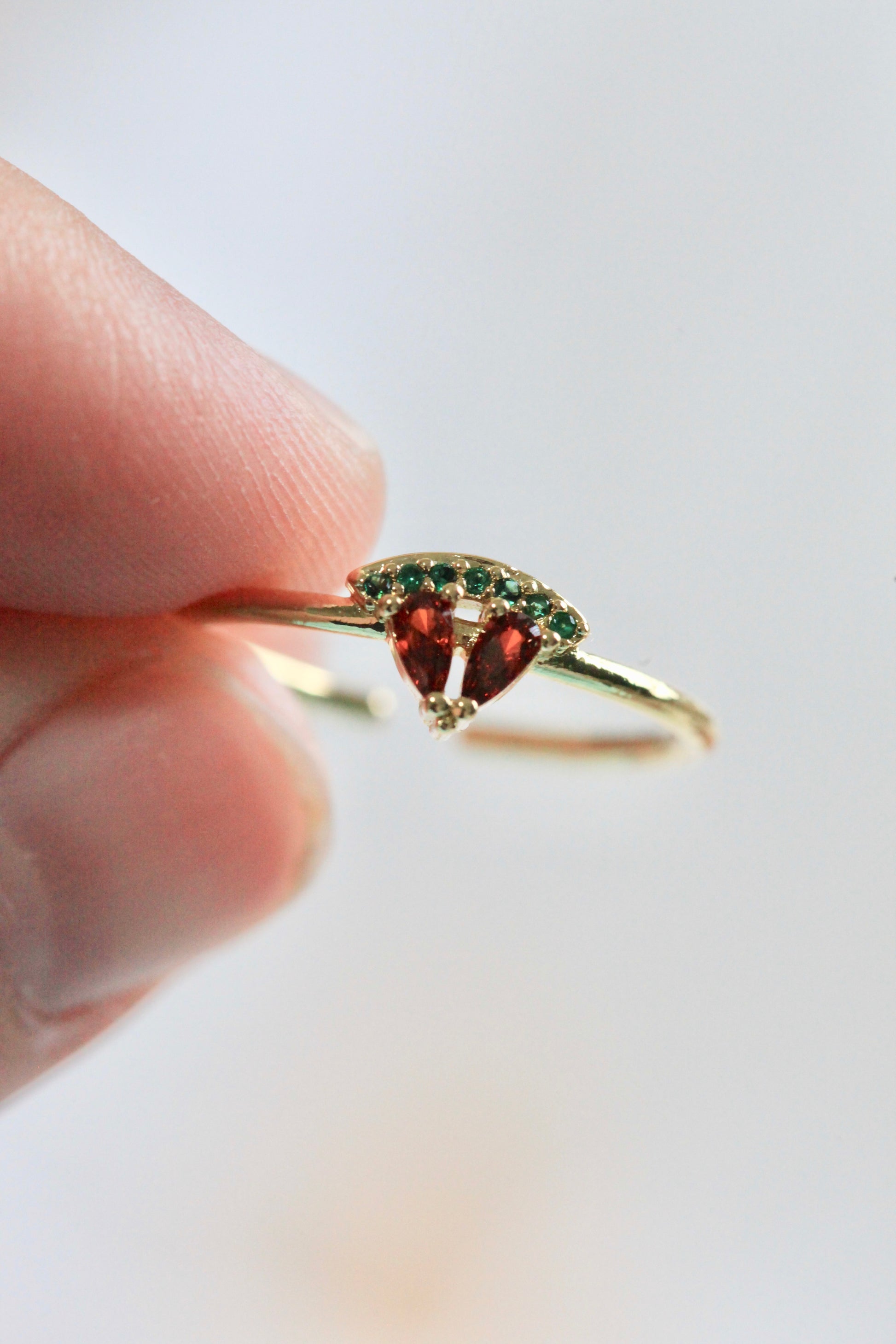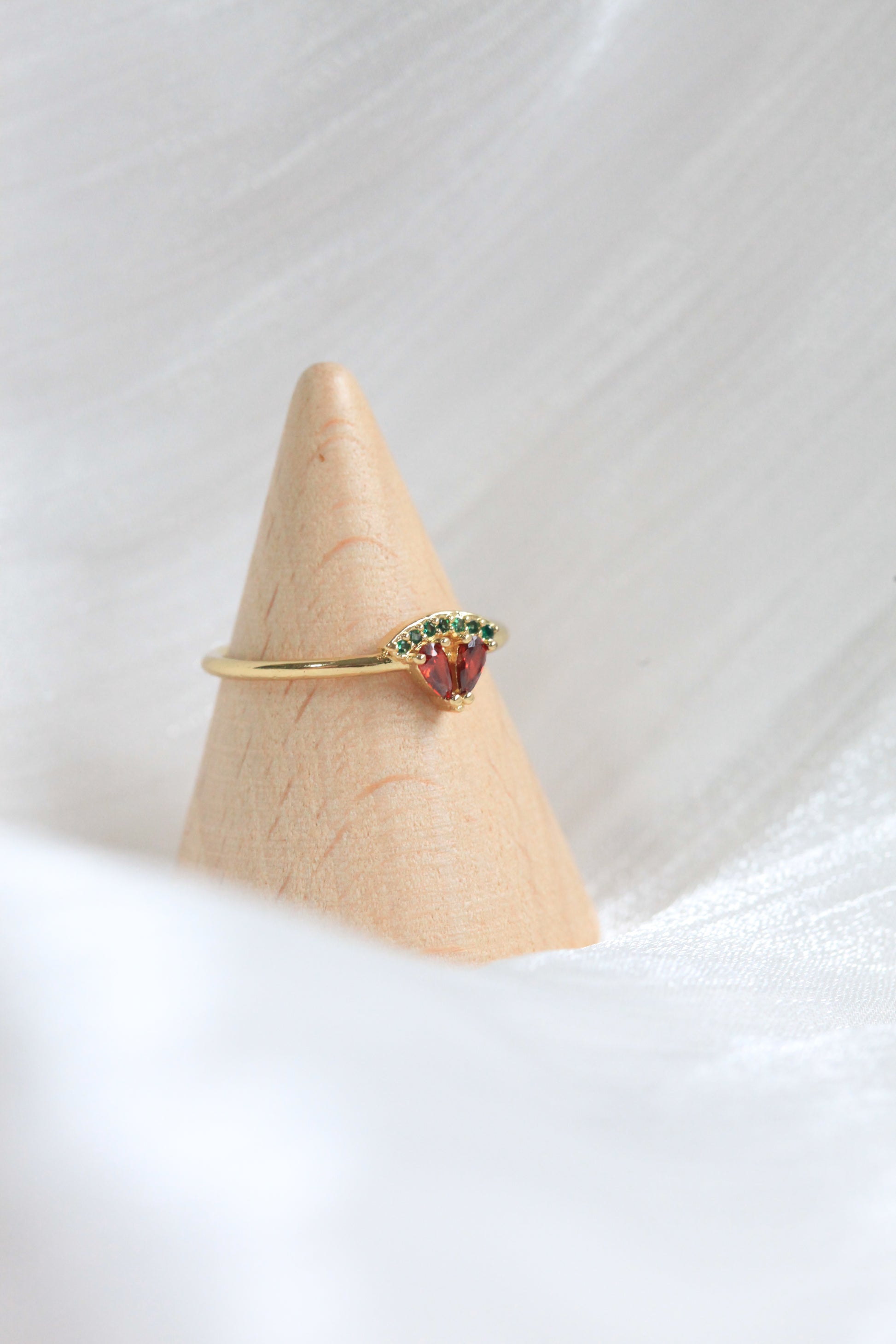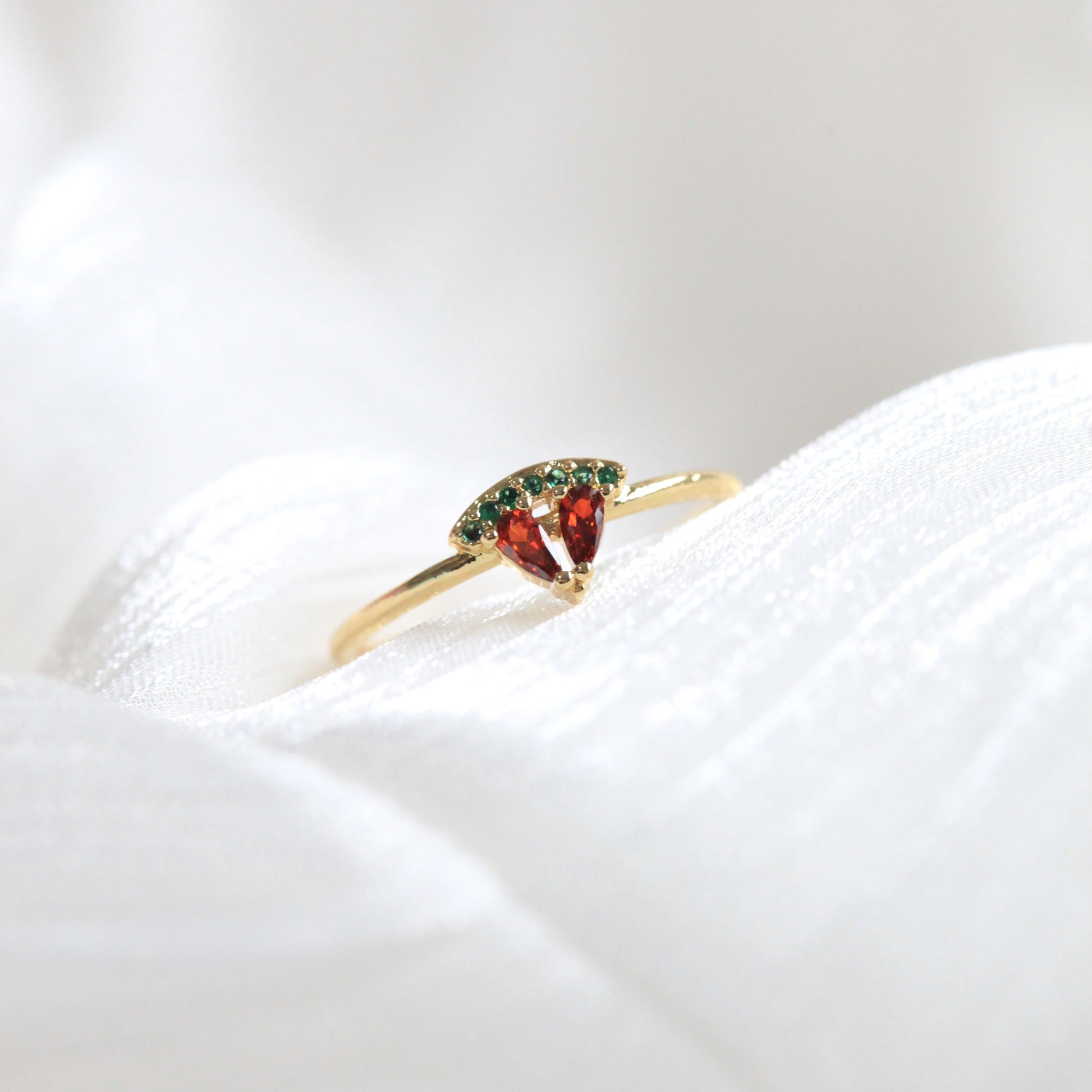 A symbol of hope to carry with you through this classy watermelon ring made with cubic zirconia, stainless steel and gold-plated hardware.